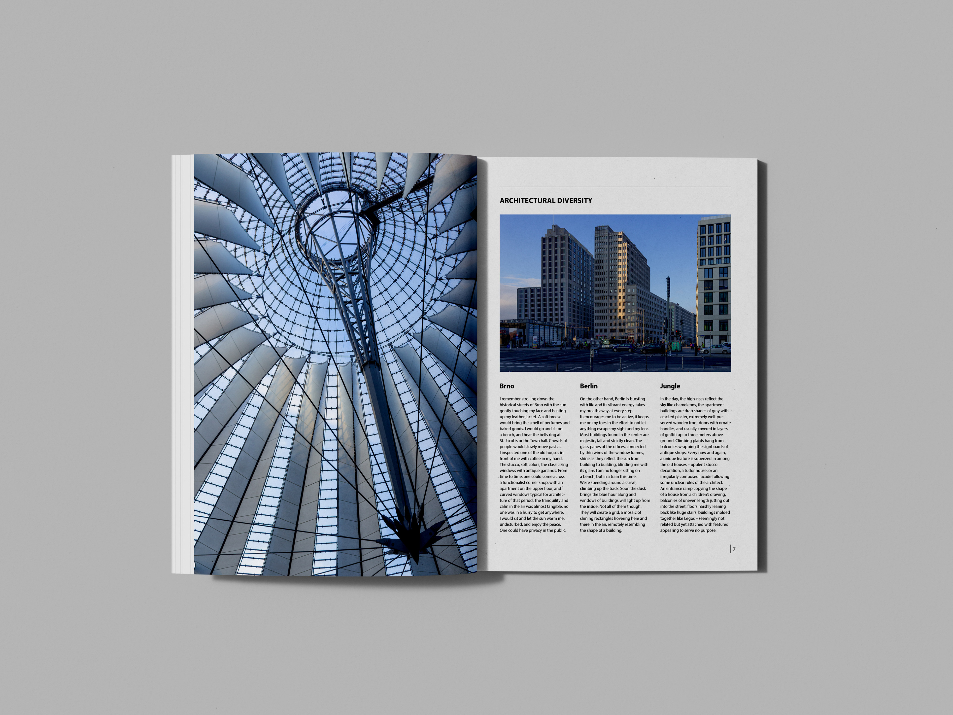 A short magazine I got inspired to design when I first arrived to Berlin. It combines street photography, architecture and nature of the city with my personal thoughts and opinions – being someone who had lived in such a metropolis for the first time, I had a lot to say.