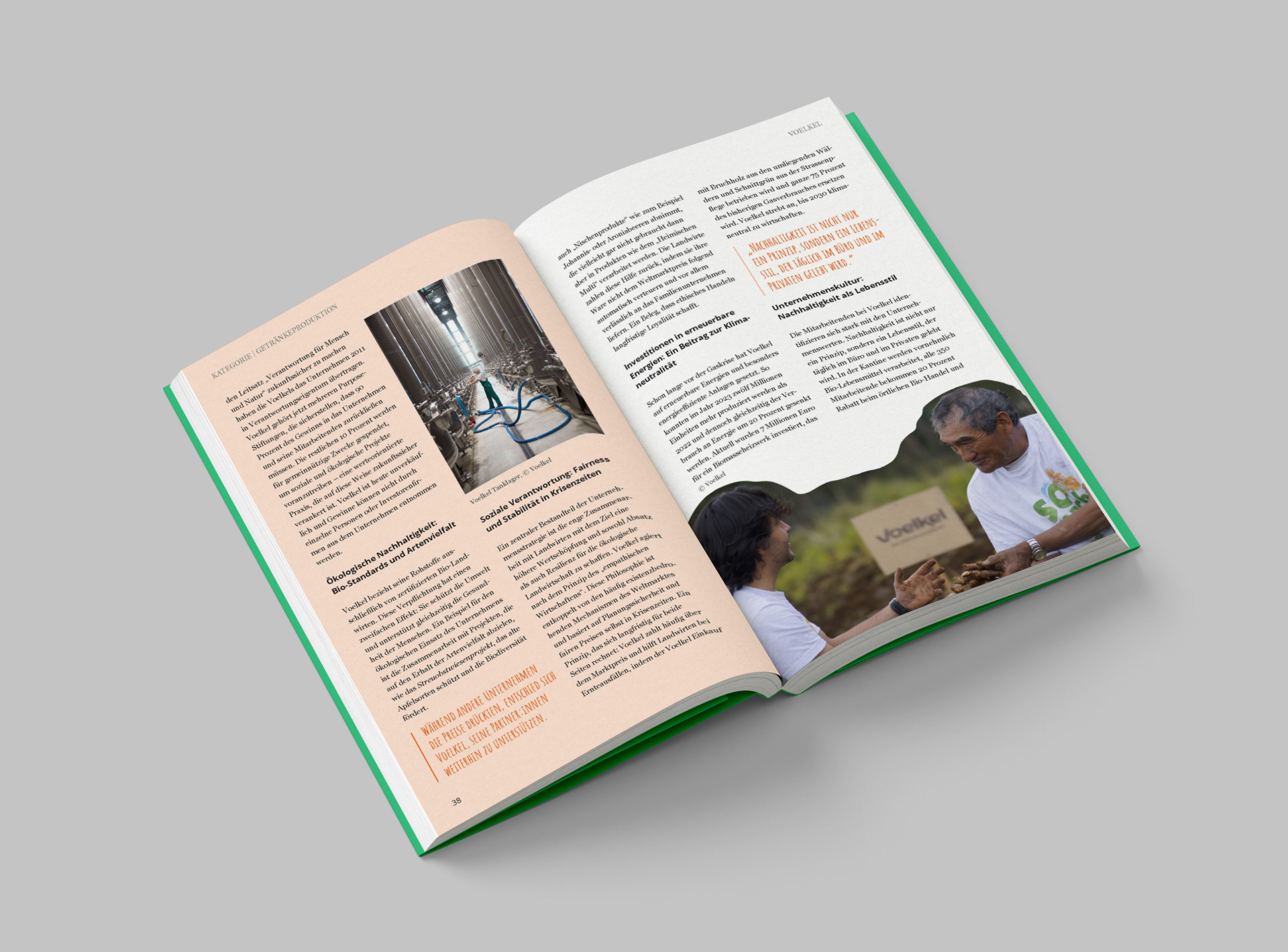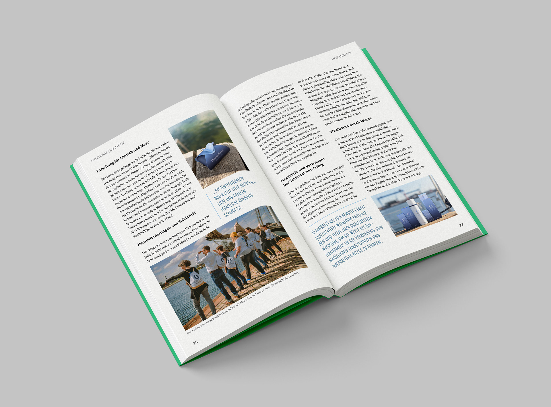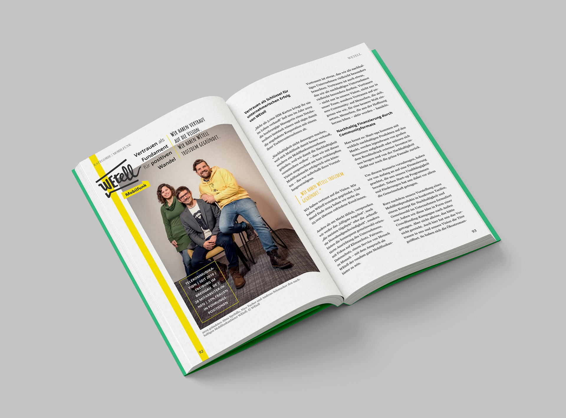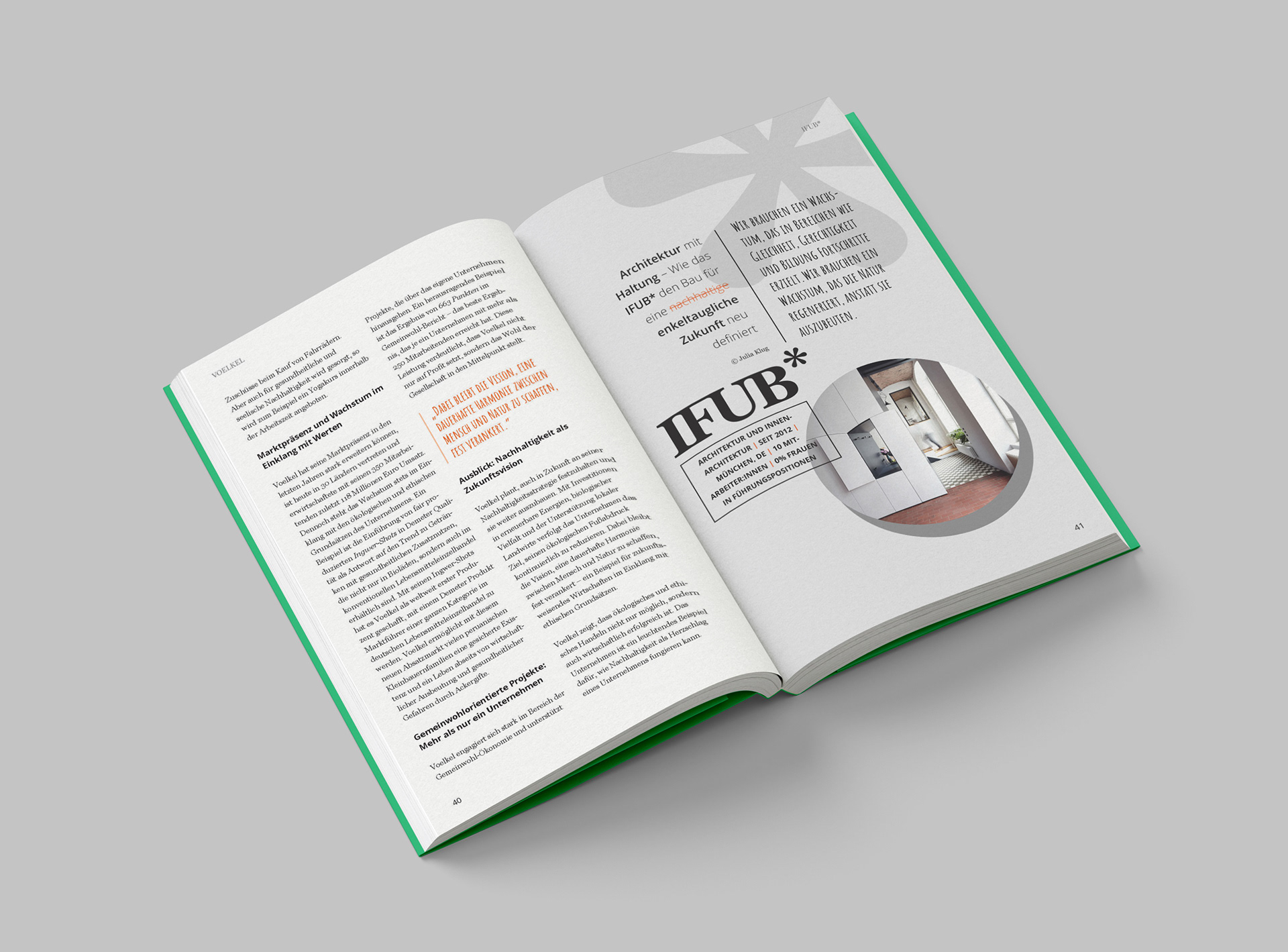 Wir schaffen Zukunft is a 2025 publication on sustainability for which I designed the complete interior visual and typographic concept. The book unites dozens of company stories, expert insights, and data-driven articles, hence I developed graphical elements and layout system which would visually unify such varied stories. I kept it optically fresh and engaging to avoid tedious repetition, resulting in a vibrant, rhythmically designed book.